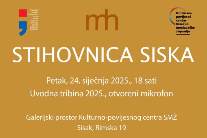 Uvodna tribina Stihovnice Siska Matice hrvatske u 2025. godini na rasporedu je u petak 24. siječnja s početkom u 18 sati, u Galerijskom prostoru Kulturno-povijesnog centra Sisačko-moslavačke županije (Rimska ulica 19).