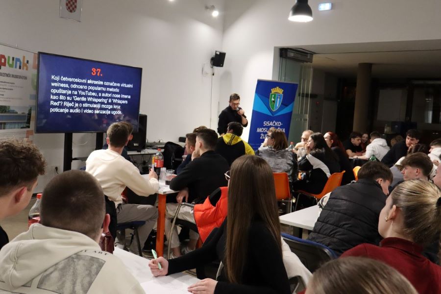 Kutina, 21. ožujka 2025. – Prva aktivnost Centra za mlade Sisačko-moslavačke županije u Kutini pokazala se pravim pogotkom. U Poduzetničkom inkubatoru PUNK u Kutini u petak, 21. ožujka održan je pub kviz općeg znanja u organizaciji Centra za mlade SMŽ.