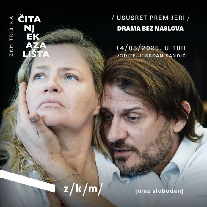 Zagrebačko kazalište mladih poziva vas na tribinu Čitanje kazališta: Ususret premijeri Drama bez naslova, A.P. Čehova, u režiji Paola Magellija, u srijedu, 14. svibnja 2025. u 18:00 sati, u foyeru ZKM-a.