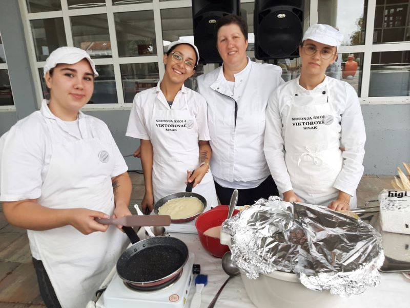 Tu novu snagu predstavljale su učenice-kuharice Lea, Đurđica, Josipa i Marina sa svojim mentoricama iz Obrtničke škole na Viktorovcu u Sisku. Marljivo su pekle palačinke i s nadjevom podijelile najmanje 200 komada.
