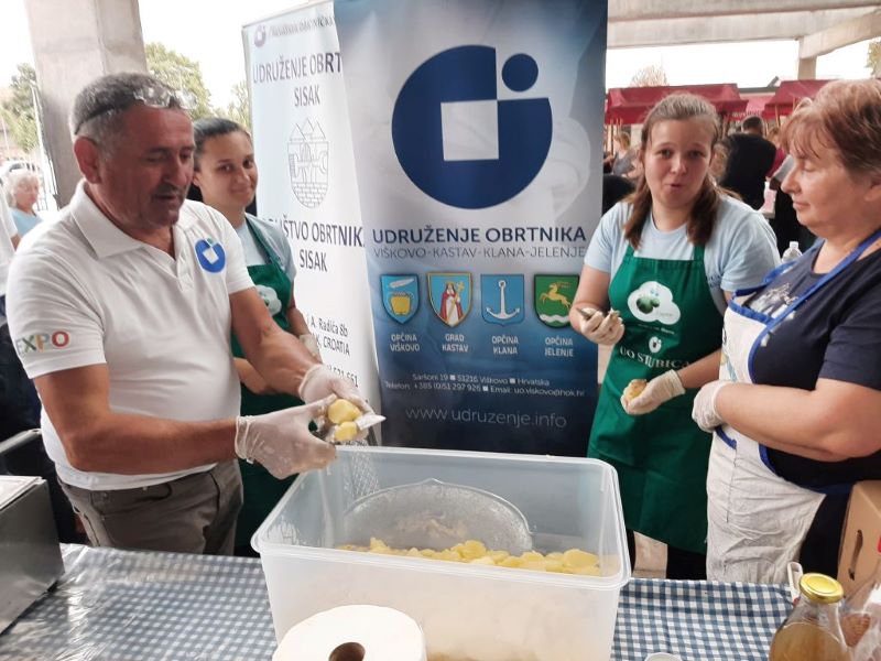 Od nekoliko valova pljuskova kiše zaštićeni ispod krova nove Gradske tržnice svi sudionici mogli su nesmetano obavljati svoje zadaće: obrtnici u izravnom spravljanju specijaliteta svojih krajeva, a naš domaći narod u očekivanju okončanja kuhanja, pečenja, slaganja, sortiranja…