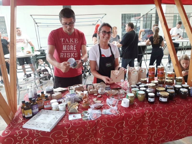 Razne vrste slastica, najviše po domaćem receptu makovnjača i orehnjača, ali i narezaka češnjovki od izvorne slavonske svinje, sira i dr. izložili su i na prosudbu Petrinjciima ponudili supružnici Ružica i Dražen Bajević iz Garešnice.