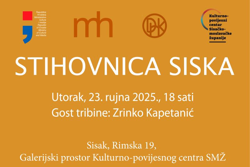 Sljedeća tribina Stihovnice Siska Matice hrvatske na rasporedu je u utorak 23. rujna 2025. s početkom u 18 sati, u Galerijskom prostoru Kulturno-povijesnog centra Sisačko-moslavačke županije (Rimska ulica 19).