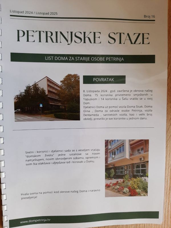 U Petrinji se za ovu populaciju korisnika najviše skupno i organizirano brine Dom za starije osobe, poslije potresa temeljito obnovljen i uređen, a lani opet useljen za sve vrste skrbi tijekom boravka.