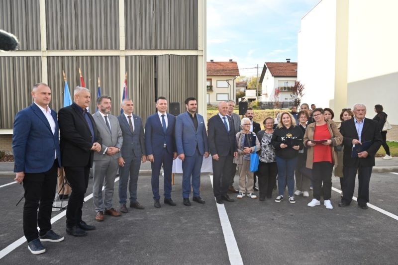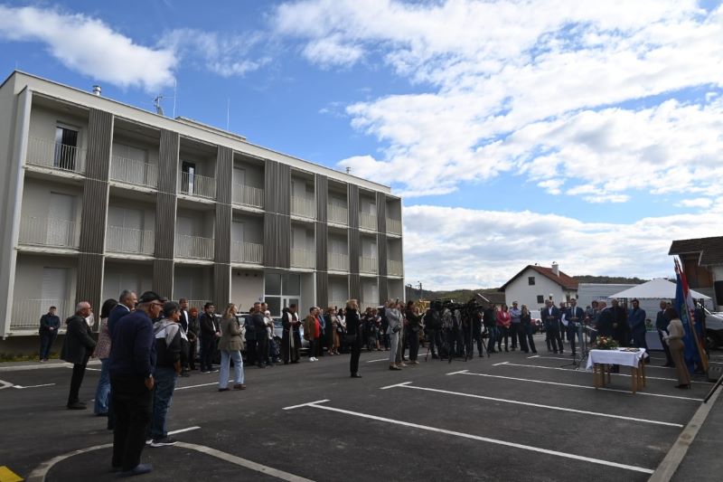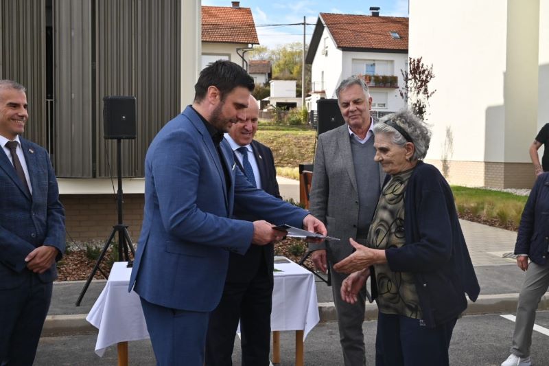 Topusko, 22. listopada 2025. – U Topuskom su danas useljene 4 višestambene zgrade sa 52 stana izgrađene u sklopu projekta Uklanjanje i izgradnja zamjenskih stambenih jedinica u vlasništvu RH (OPKK) i temeljem Zakona o obnovi zgrada oštećenih potresom (APN). Novim stanarima ključeve su uručili potpredsjednik Vlade i ministar Branko Bačić, župan Ivan Celjak, gradonačelnik Siska Domagoj Orlić, ravnatelj SAFU-a Dragan Jelić, ravnatelj APN-a Dragan Hristov i načelnik Općine Topusko Ivica Kuzmić.