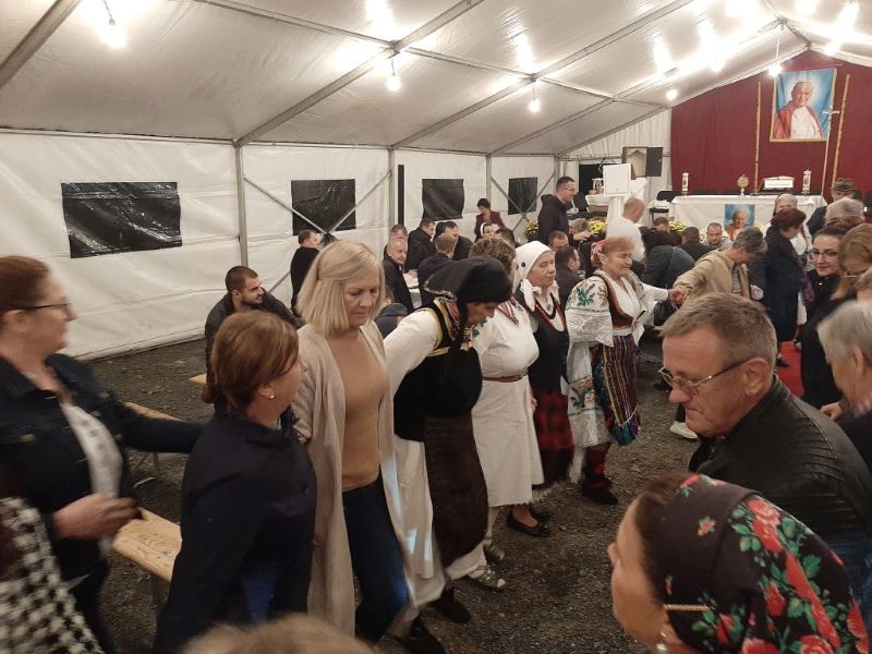 Puno truda i napora, ali i volje i želje u organiziranju svečanosti 22. listopada, štovanja svetog zaštitnika, uložili su župljani ove zajednice, te drugi pomagači, prijatelji i suradnici, a sve ih je nabrajao i imenovao župnik Josip Karabaić, uz pohvalu: kad se bosanske ruke slože, puno se može! Pod rasvjetom žarulja, u istom šatoru postavljenom od pripadnika Hrvatske vojske, nakon večernje podvorbe lovačkog gulaša i kolača iz svake kuće ovog kvarta Petrinje, zasvirala je vesela glazba i zaplesalo karakteristično bosansko kolo…