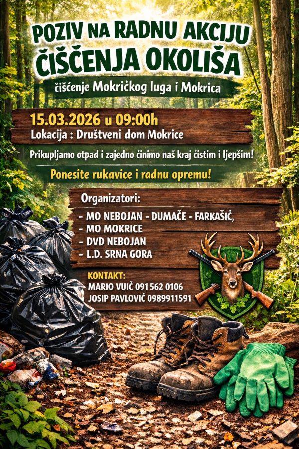 Pozivamo sve mještane i ljude dobre volje da nam se pridruže u radnoj akciji čišćenja Mokričkog luga i Mokrica.
