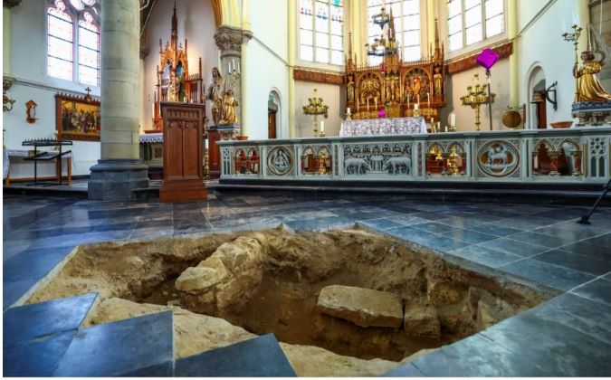 U Maastrichtu, u crkvi Crkva sv. Petra i Pavla, radnici su popravljali pod jer se jedan dio počeo izdizati. Majstor je skinuo nekoliko mramornih ploča kako bi poravnao pijesak ispod. I što se dogodilo? U tom pijesku pronašao je ljudske kosti.