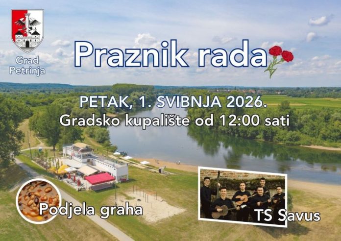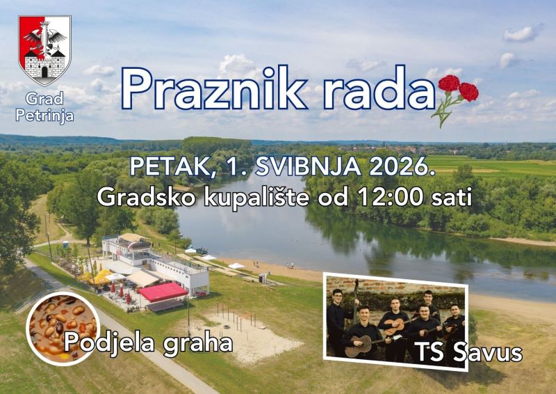 Grad Petrinja poziva vas na obilježavanje Praznika rada koje će se održati u petak, 1. svibnja 2026. godine, na Gradskom kupalištu, s početkom u 12:00 sati.